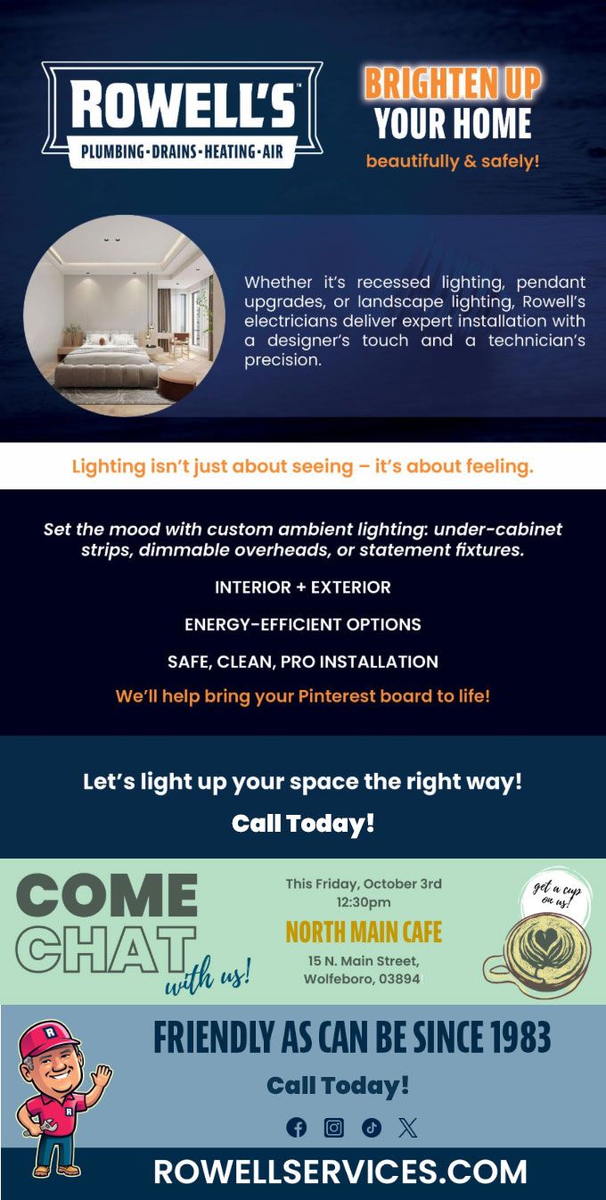 "Friendly As Can Be Since 1983!" When you need help with your plumbing, drains, heating, cooling or electrical in Somersworth, you can always rely on Rowell's Services! Call us now or book online!