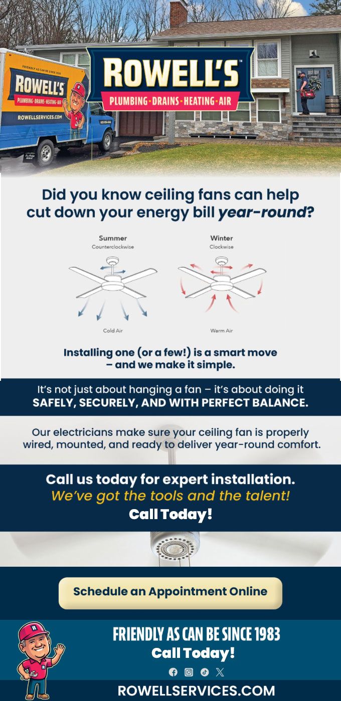 "Friendly As Can Be Since 1983!" When you need help with your plumbing, drains, heating, cooling or electrical in Somersworth, you can always rely on Rowell's Services! Call us now or book online!